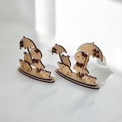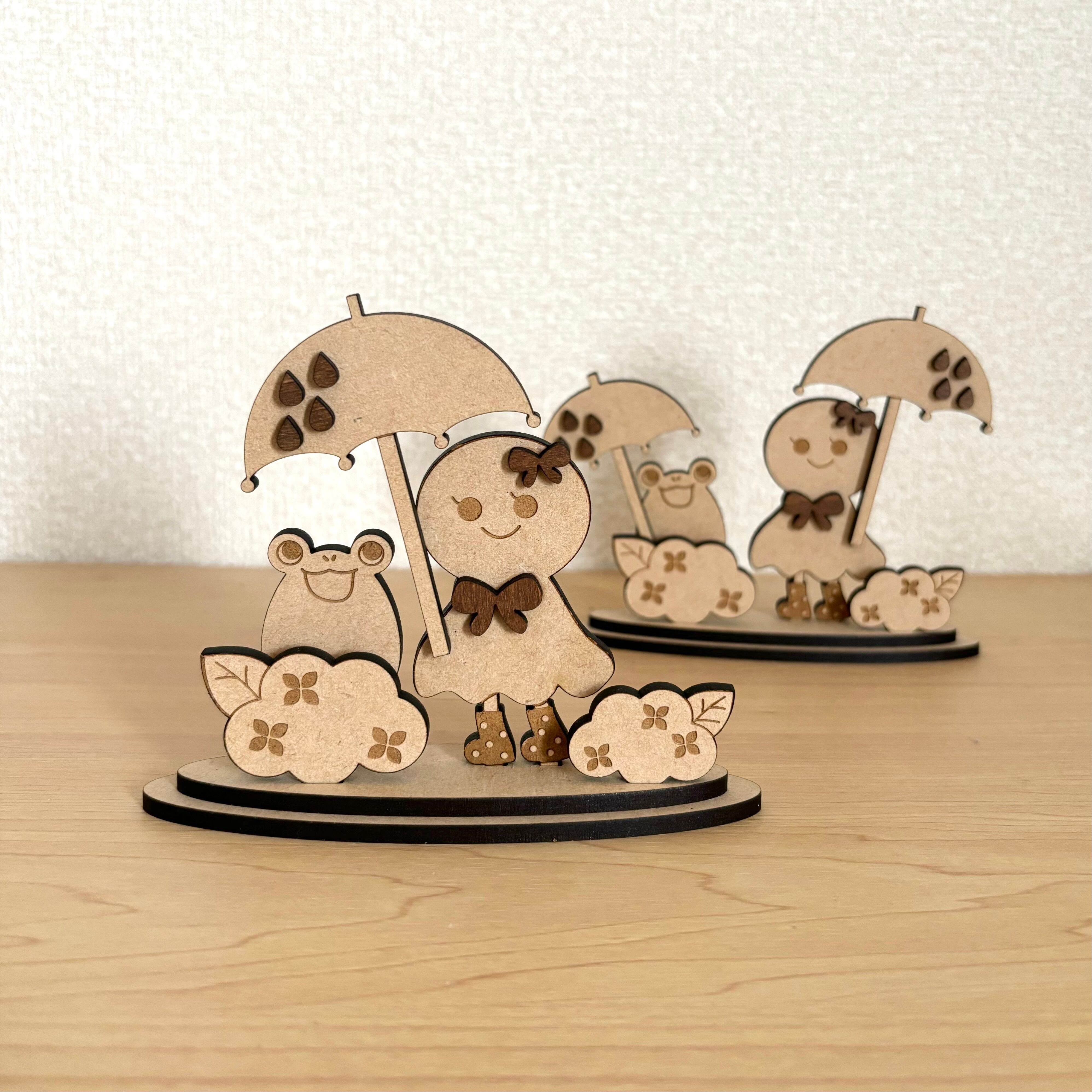 〖 梅雨 〗てるてる坊主ちゃんとカエル 木製インテリア 雨宿り 傘 癒し 雑貨