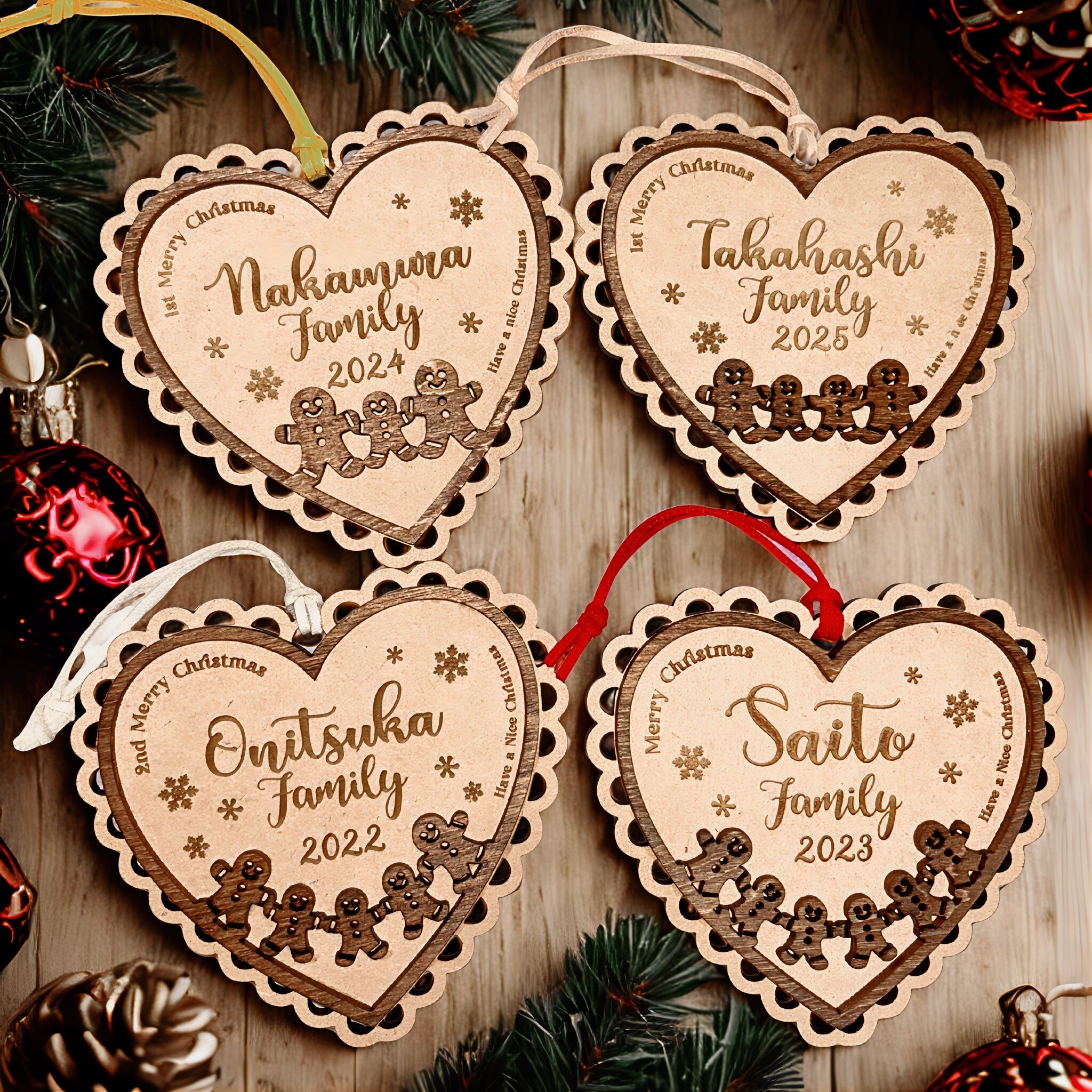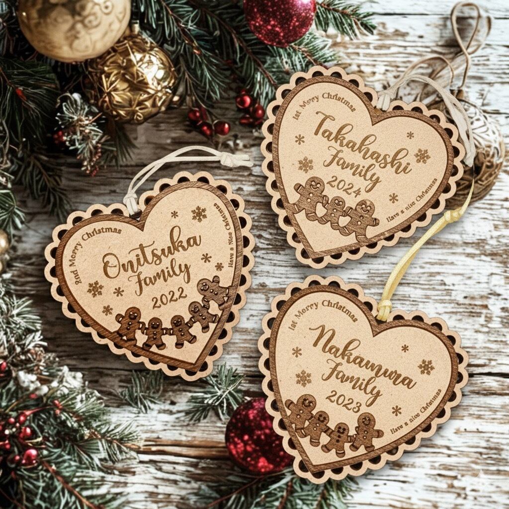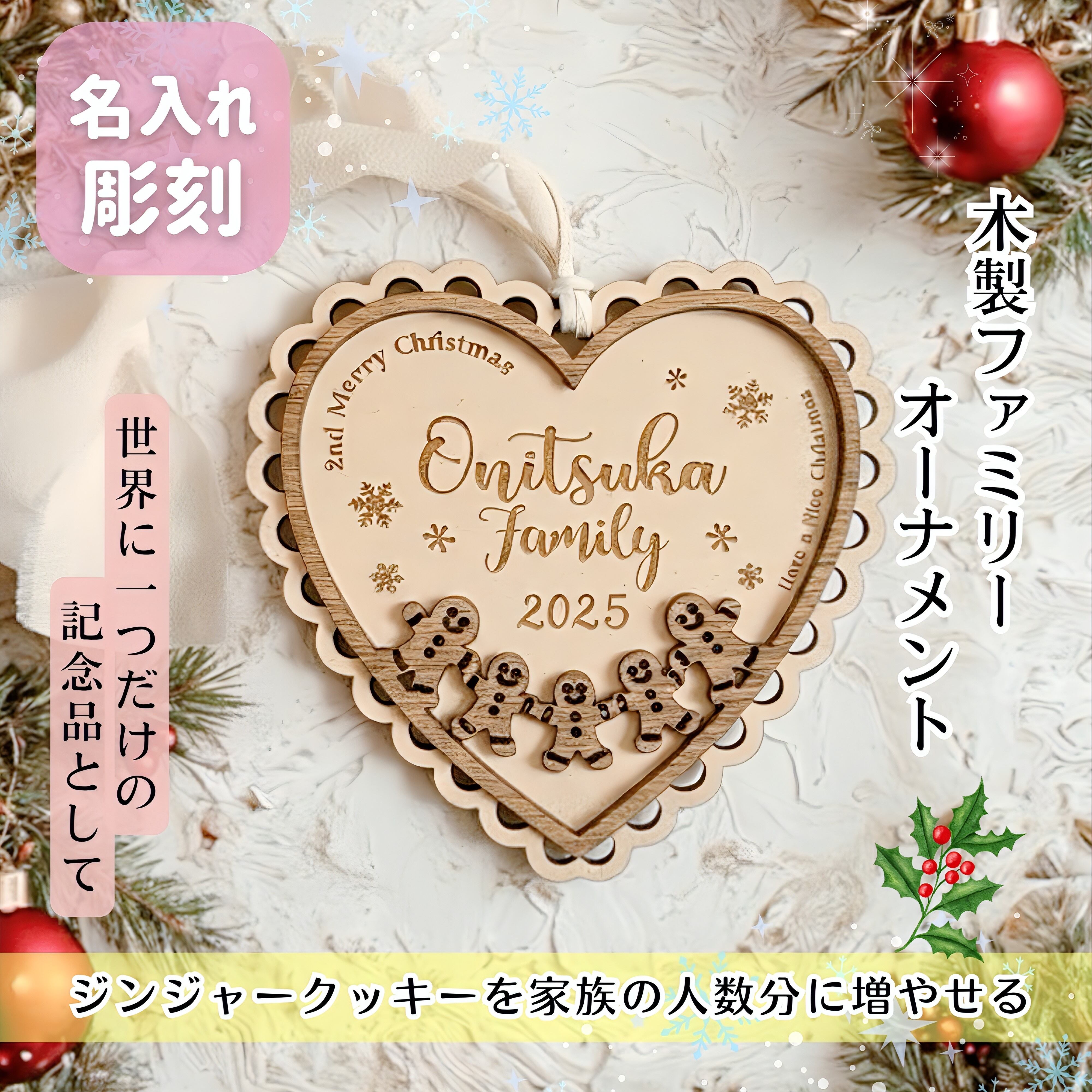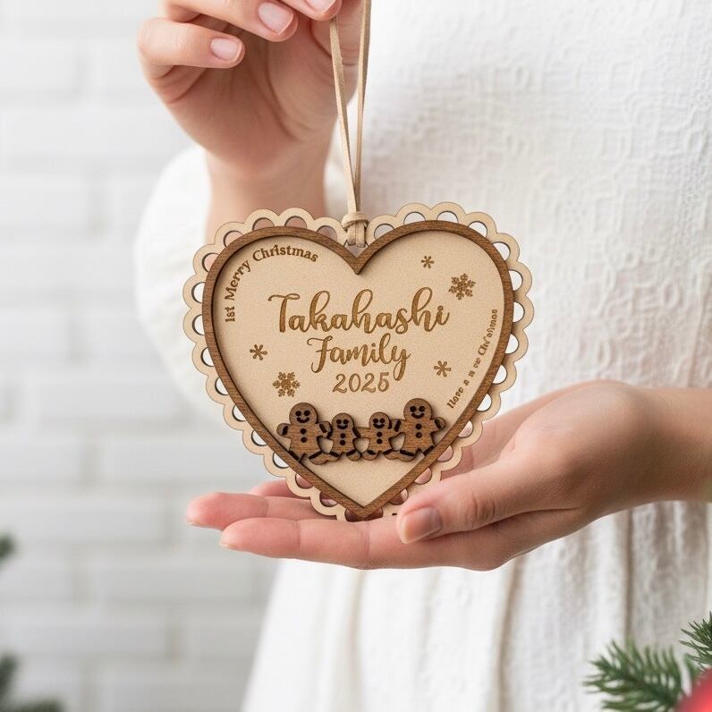 【先行予約】木製 ファミリー メモリアル オーナメント | 試作前公開 家族 名入れ 名前 ジンジャークッキー 表札 ネームプレート