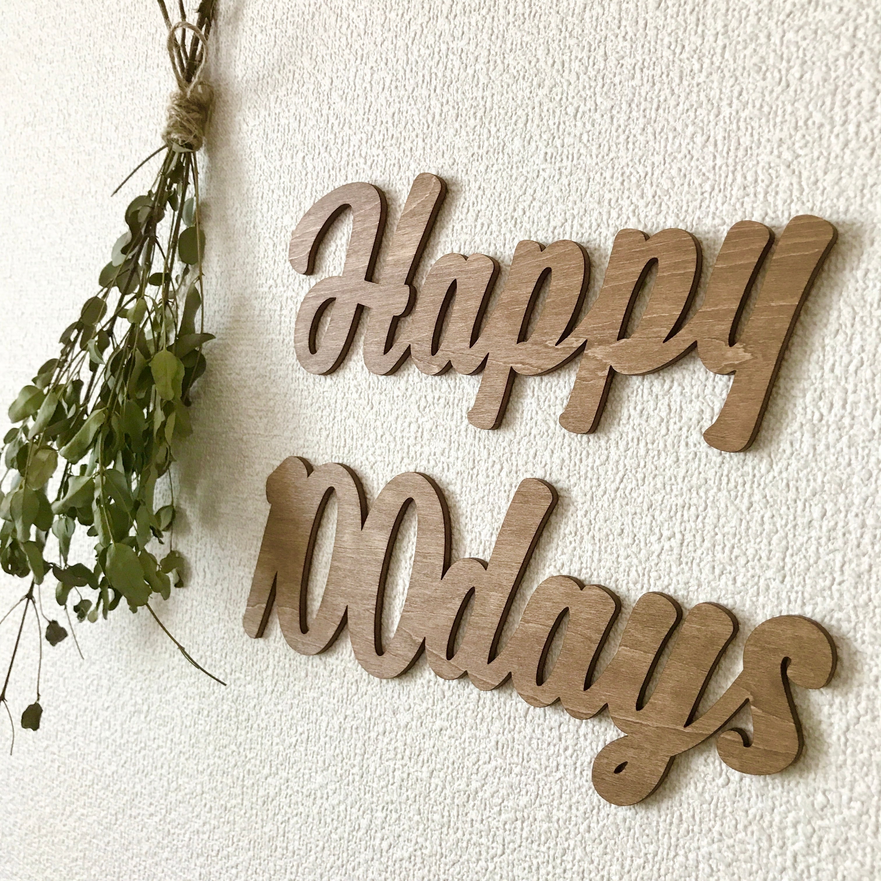 【 Happy 100days 】木製 レターバナー 百日祝い お食い初め