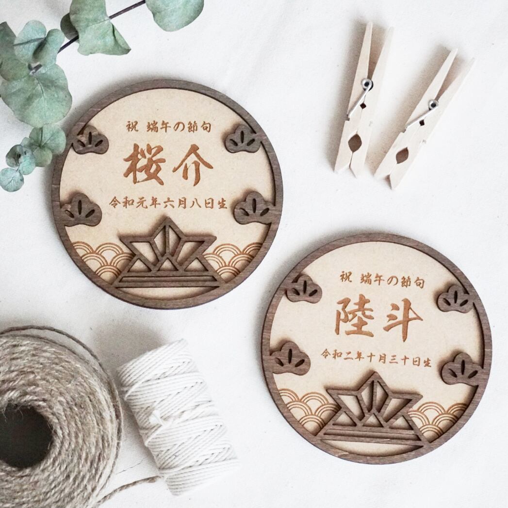 〖 端午の節句 〗 木製 名入り 木札 No.3 お名前・生年月日が入ります kodomonohi