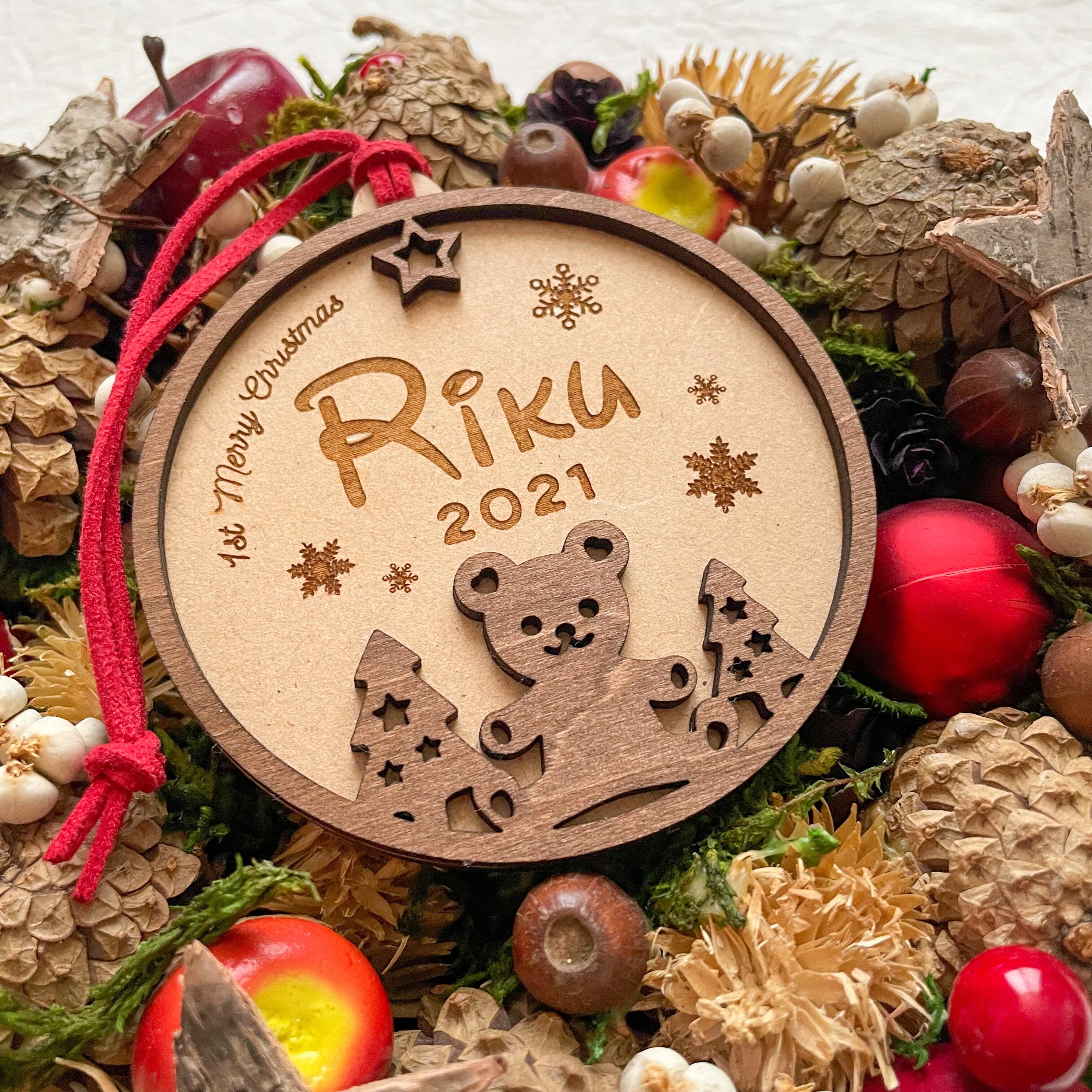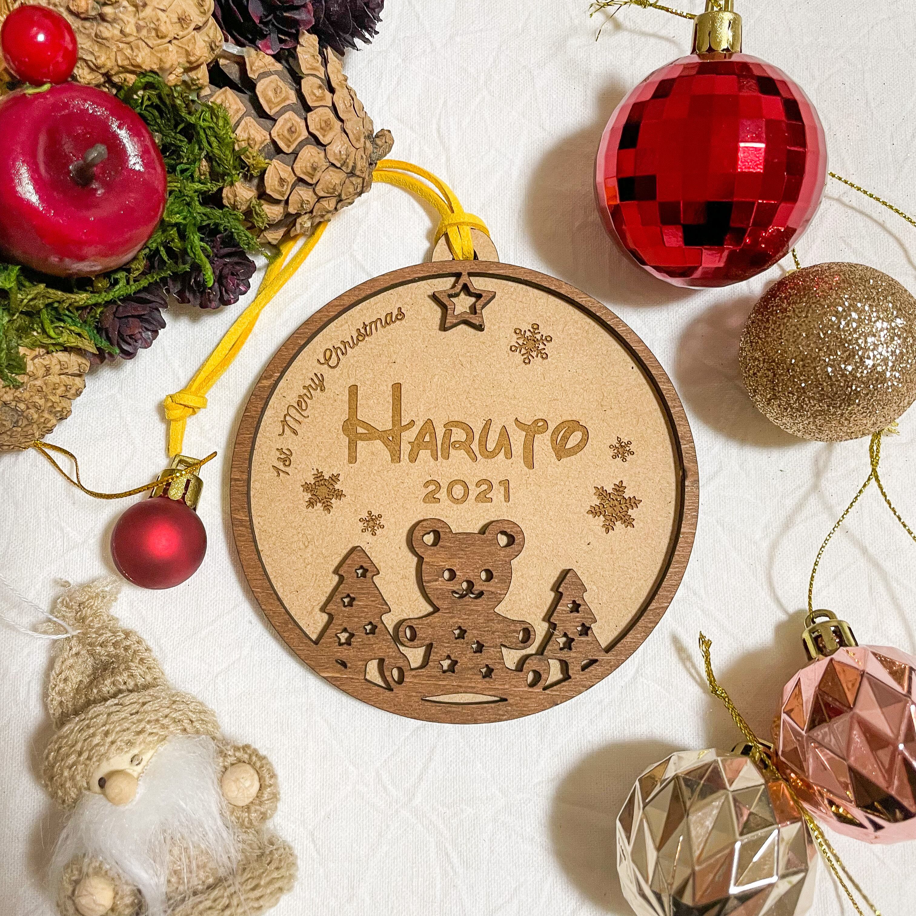 〖 予約 〗12月中旬まで発送 木製 クリスマスオーナメント お名前 生年月日が入ります