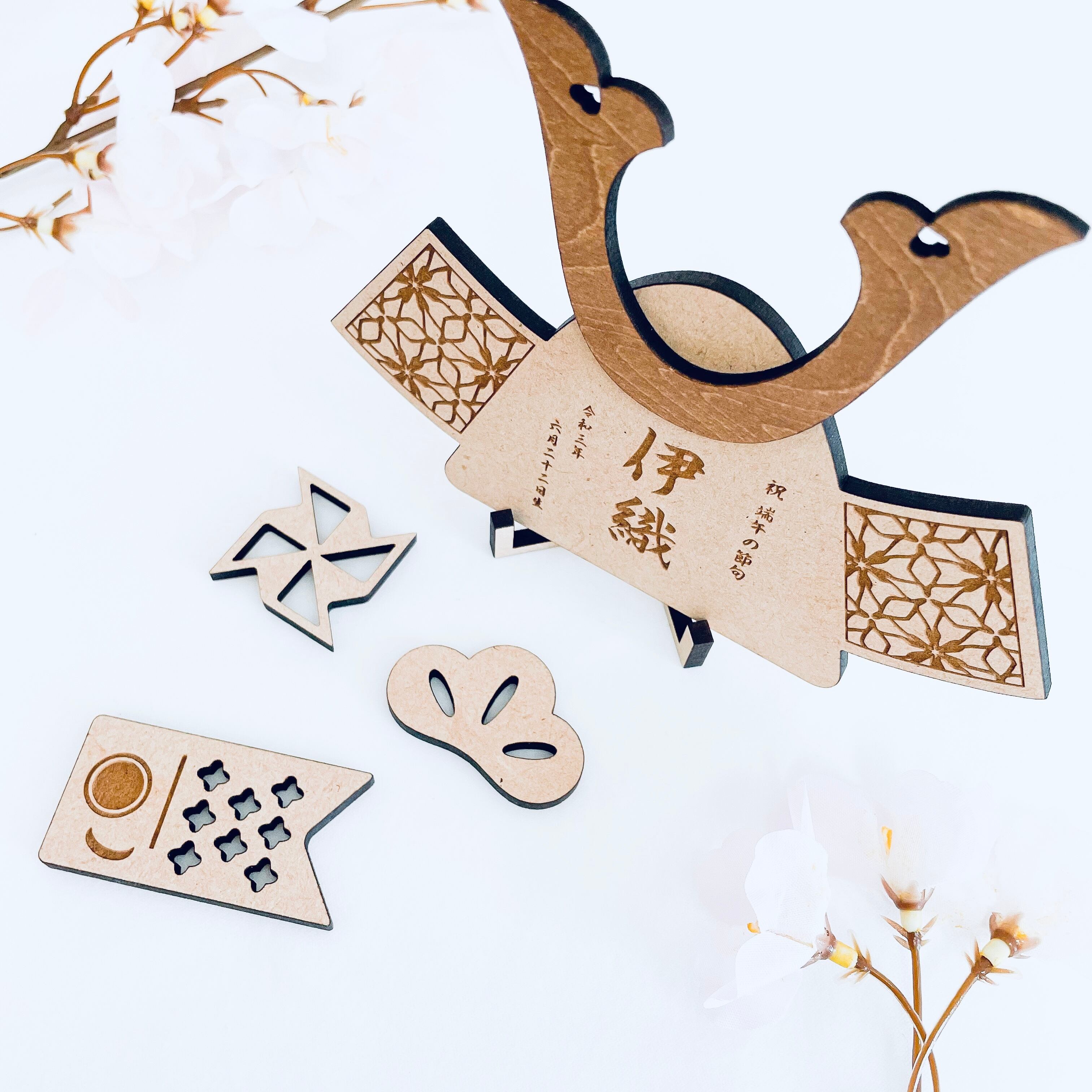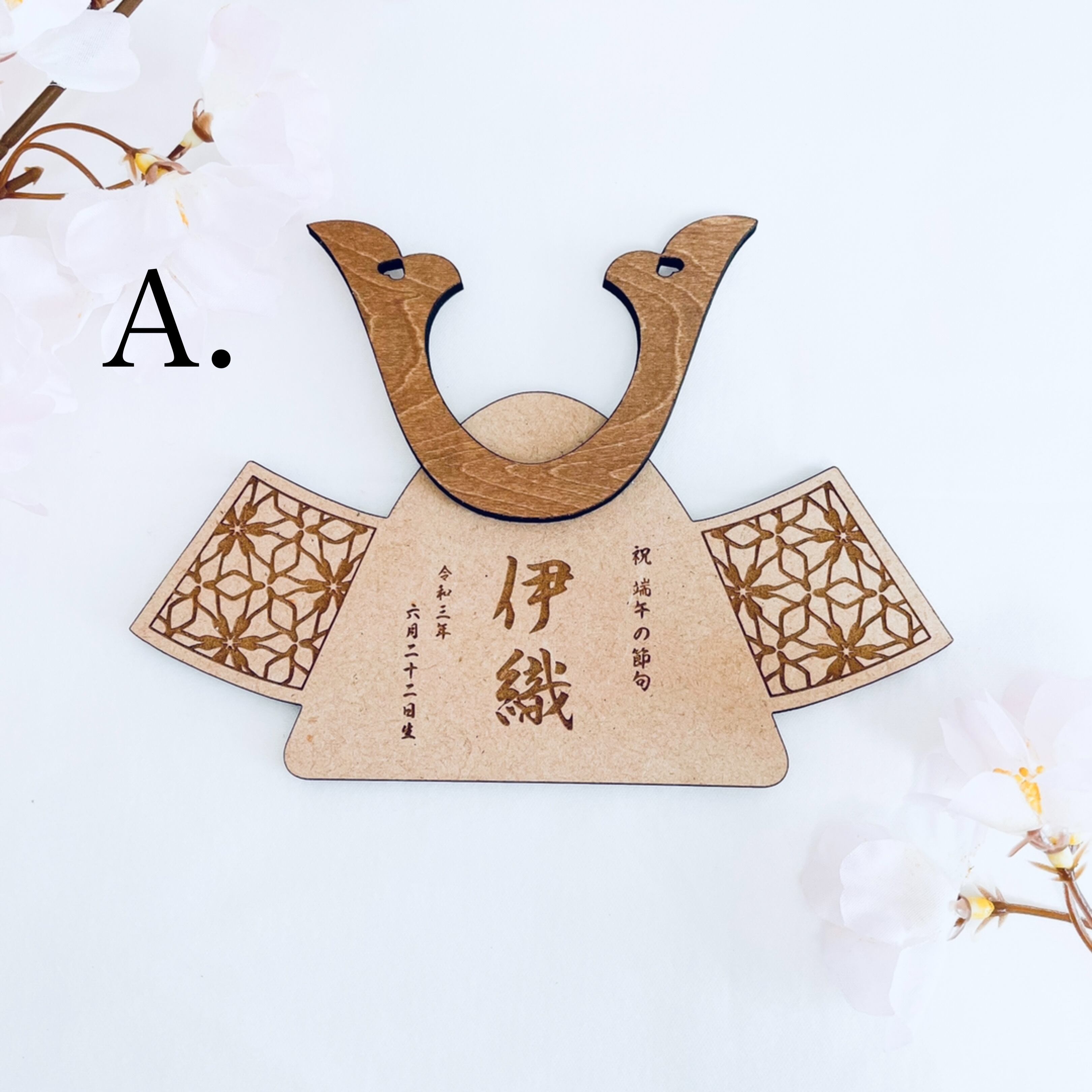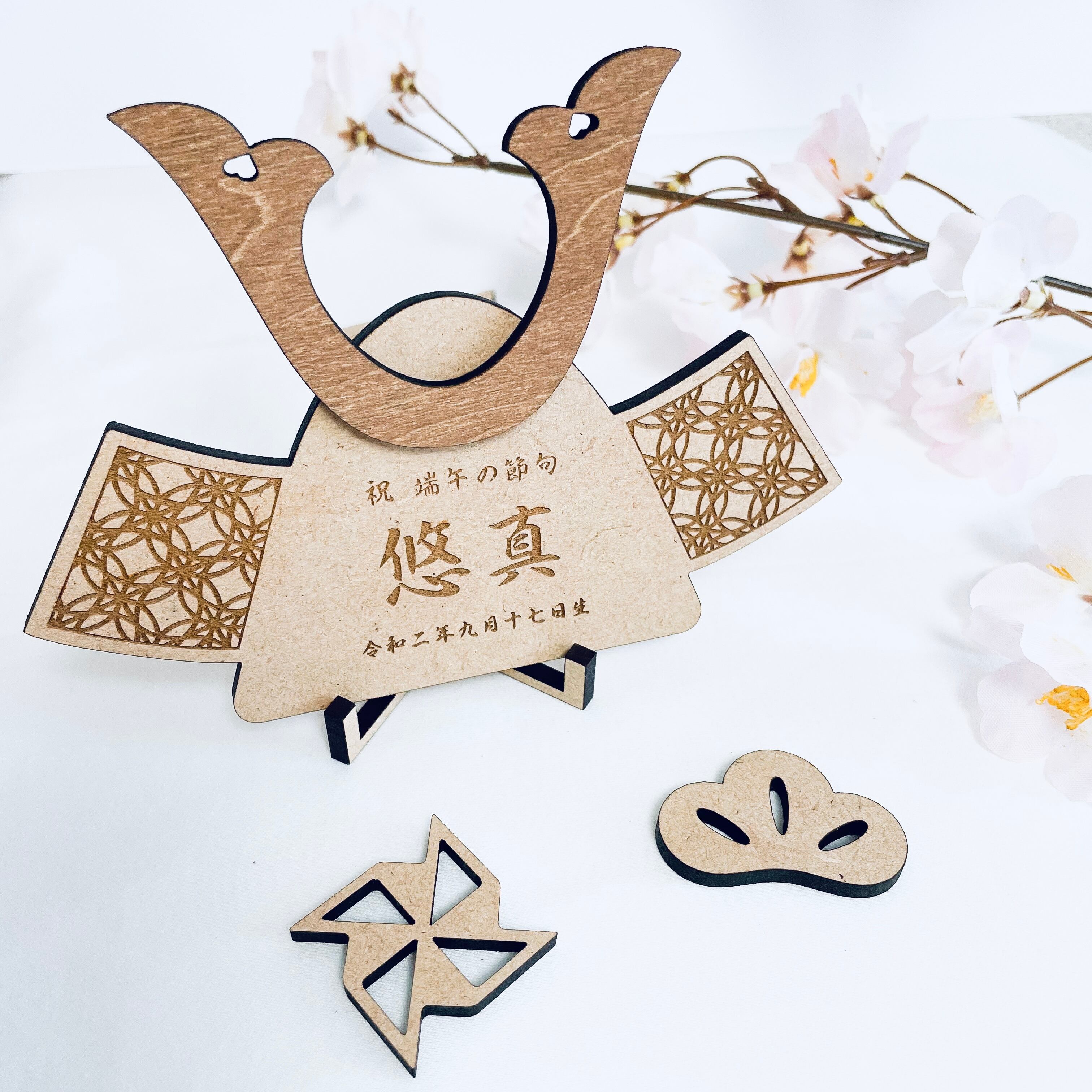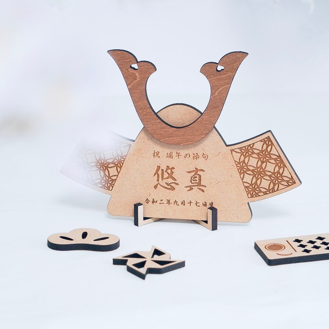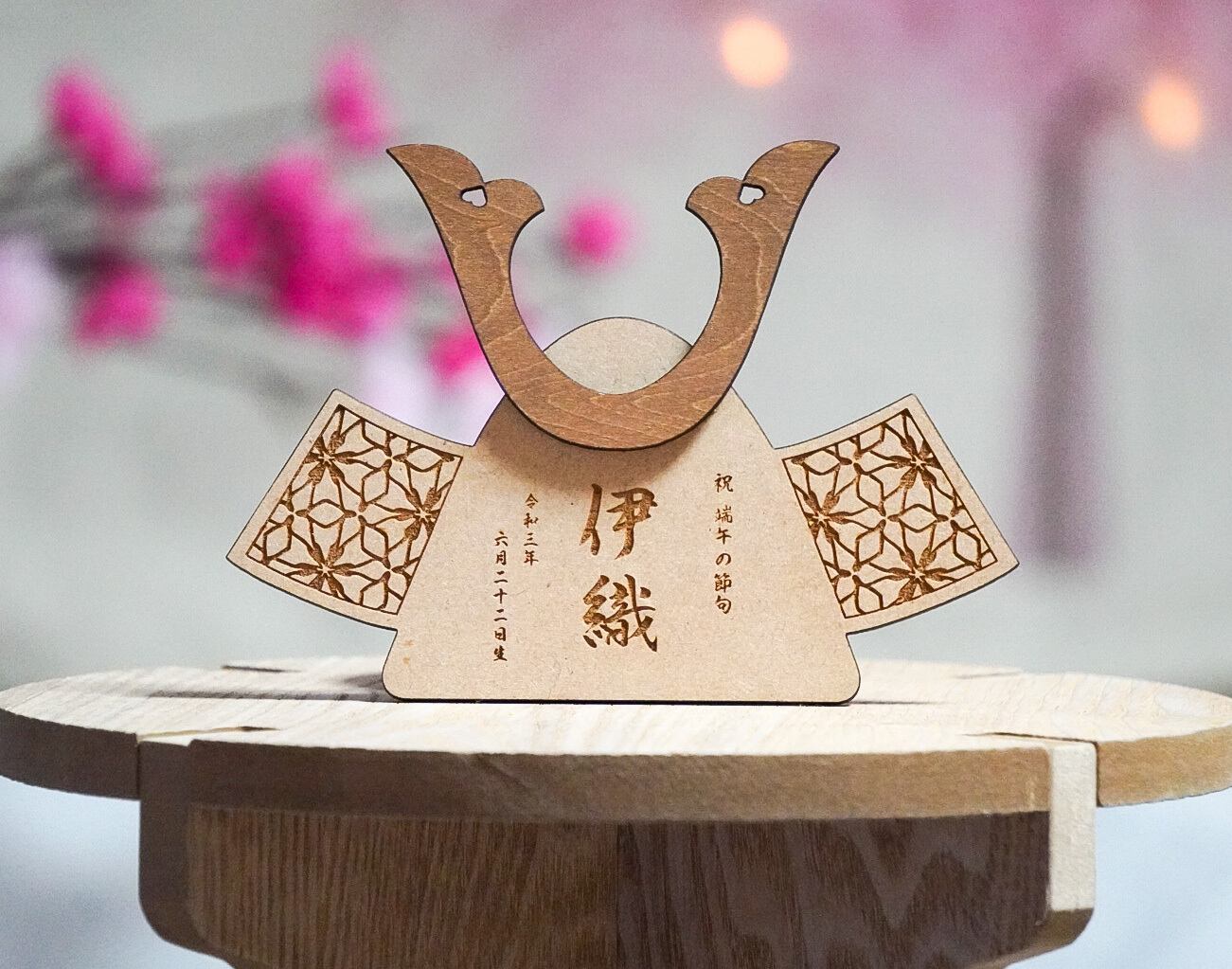 〖 端午の節句 〗木製 兜 名前入り 木札 生年月日 五月人形 オーダーメイド kodomonohi