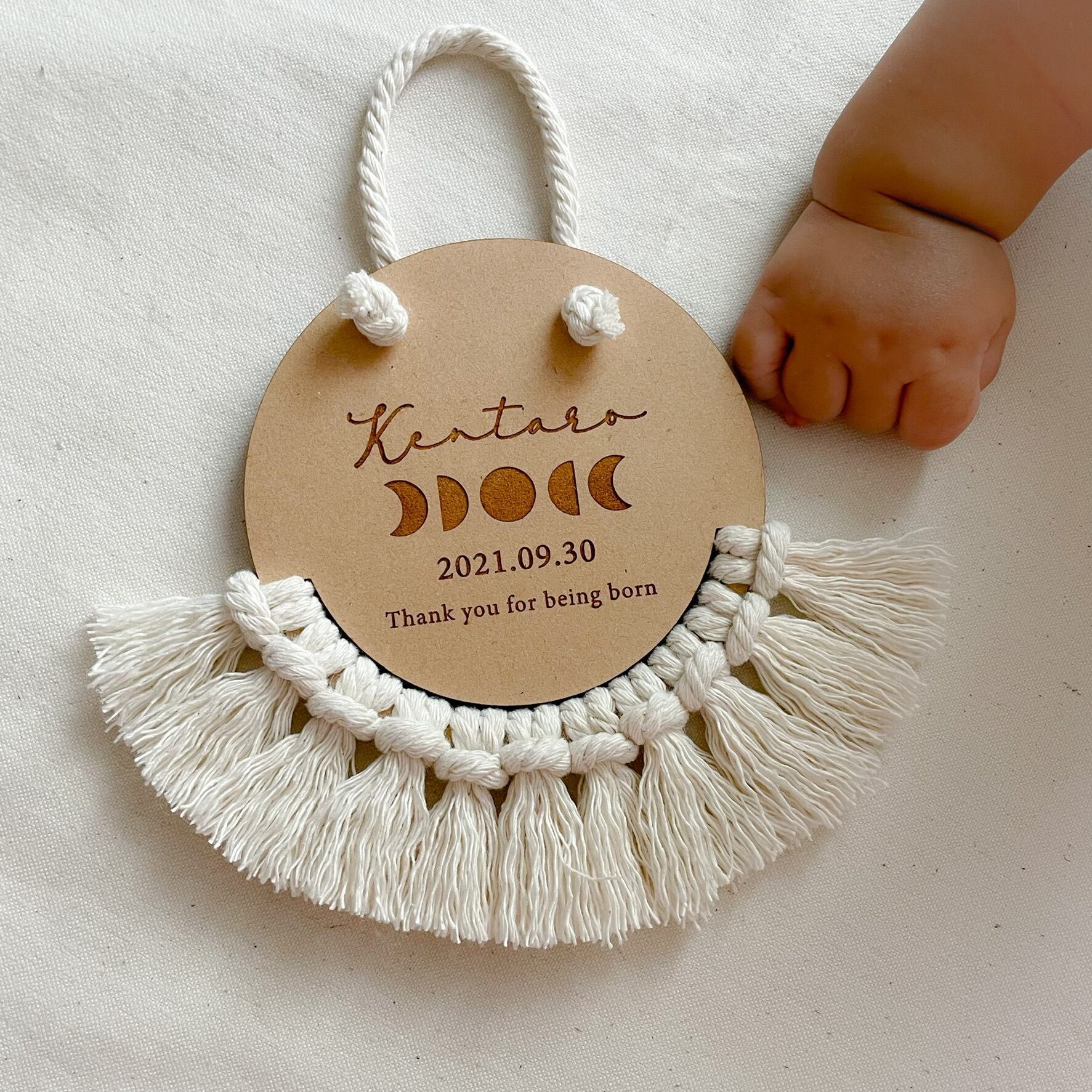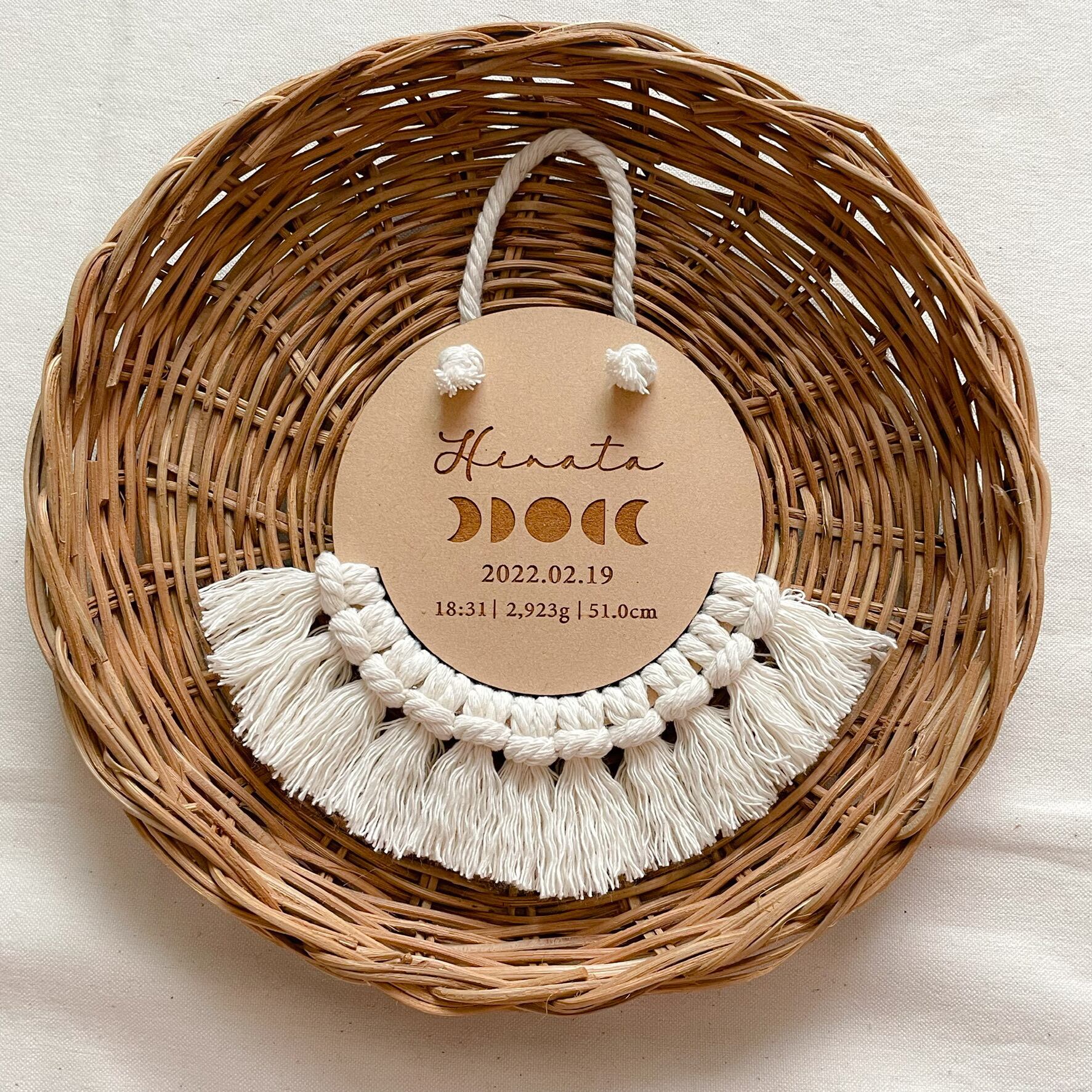 月の満ち欠け × マクラメ オーナメント 筆記体ver. 命名書 バースプレート