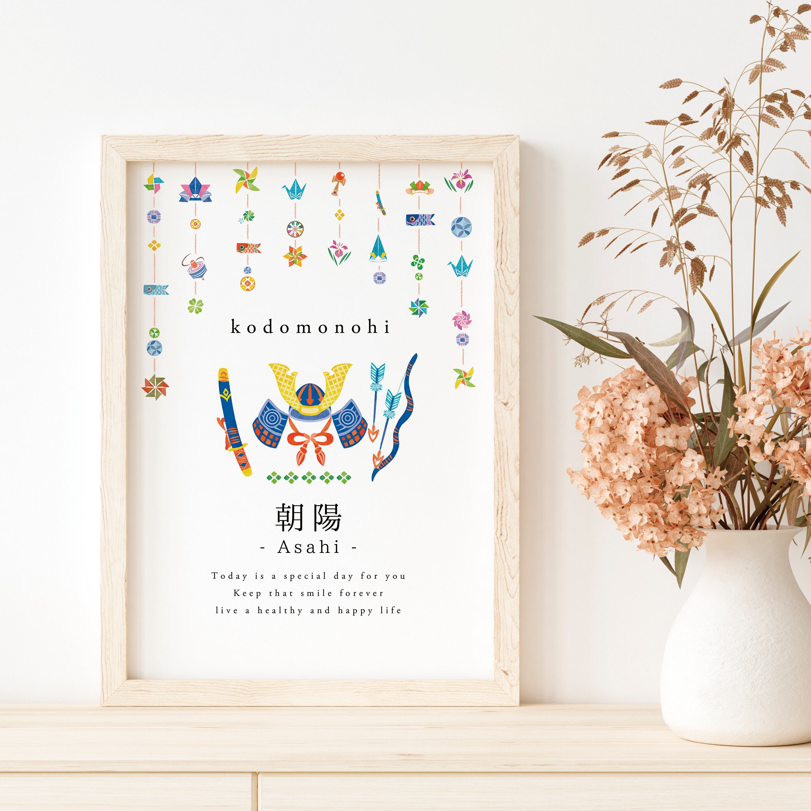 〖 端午の節句 ポスター 〗Kodomonohi 兜 kabuto 名入れ 端午の節句 五月人形 出産岩い ベビーポスター