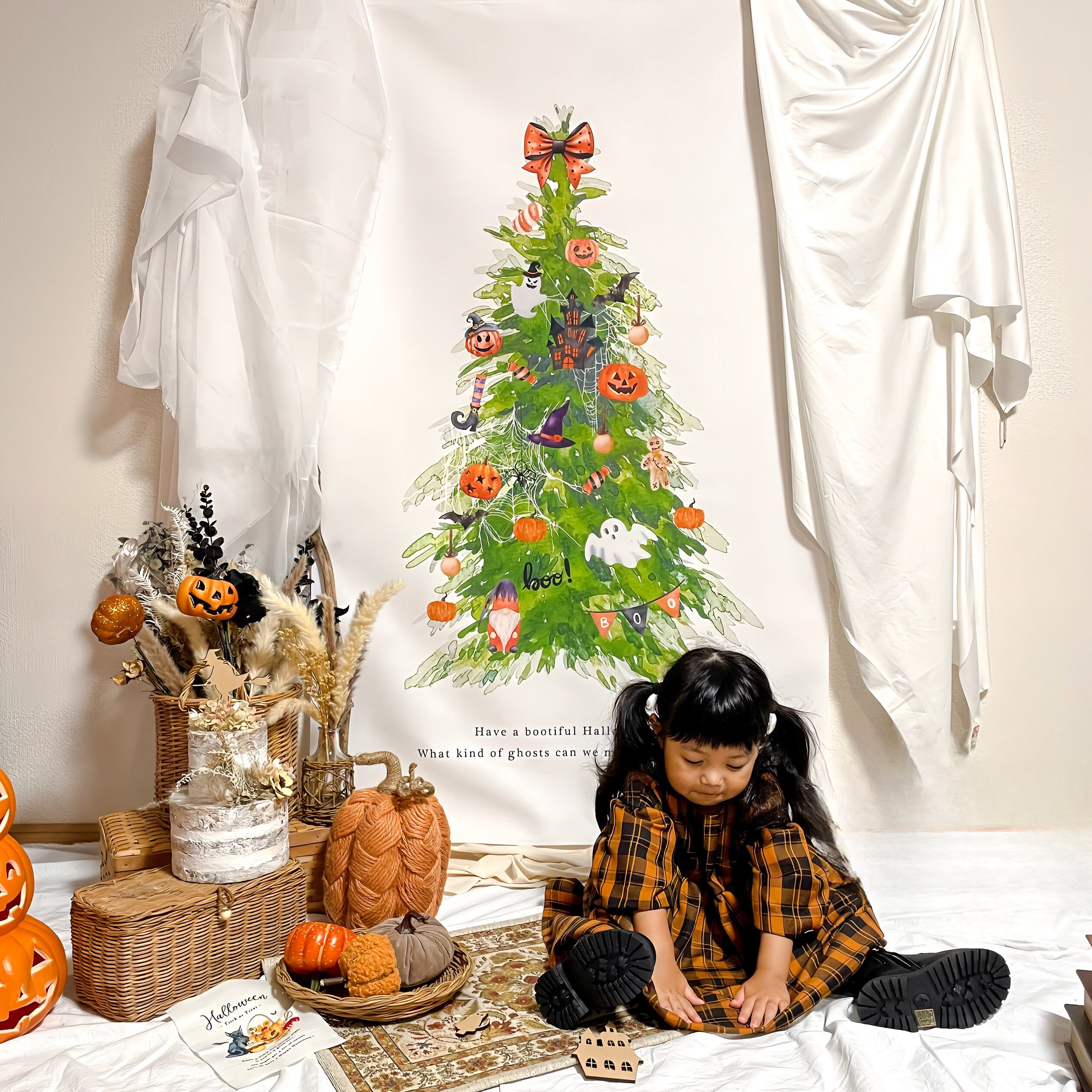 〖折り目なしで配送可能 〗 ハロウィン ツリー タペストリー 001 トロマット 最長150cm 撮影アイテム おうちスタジオ