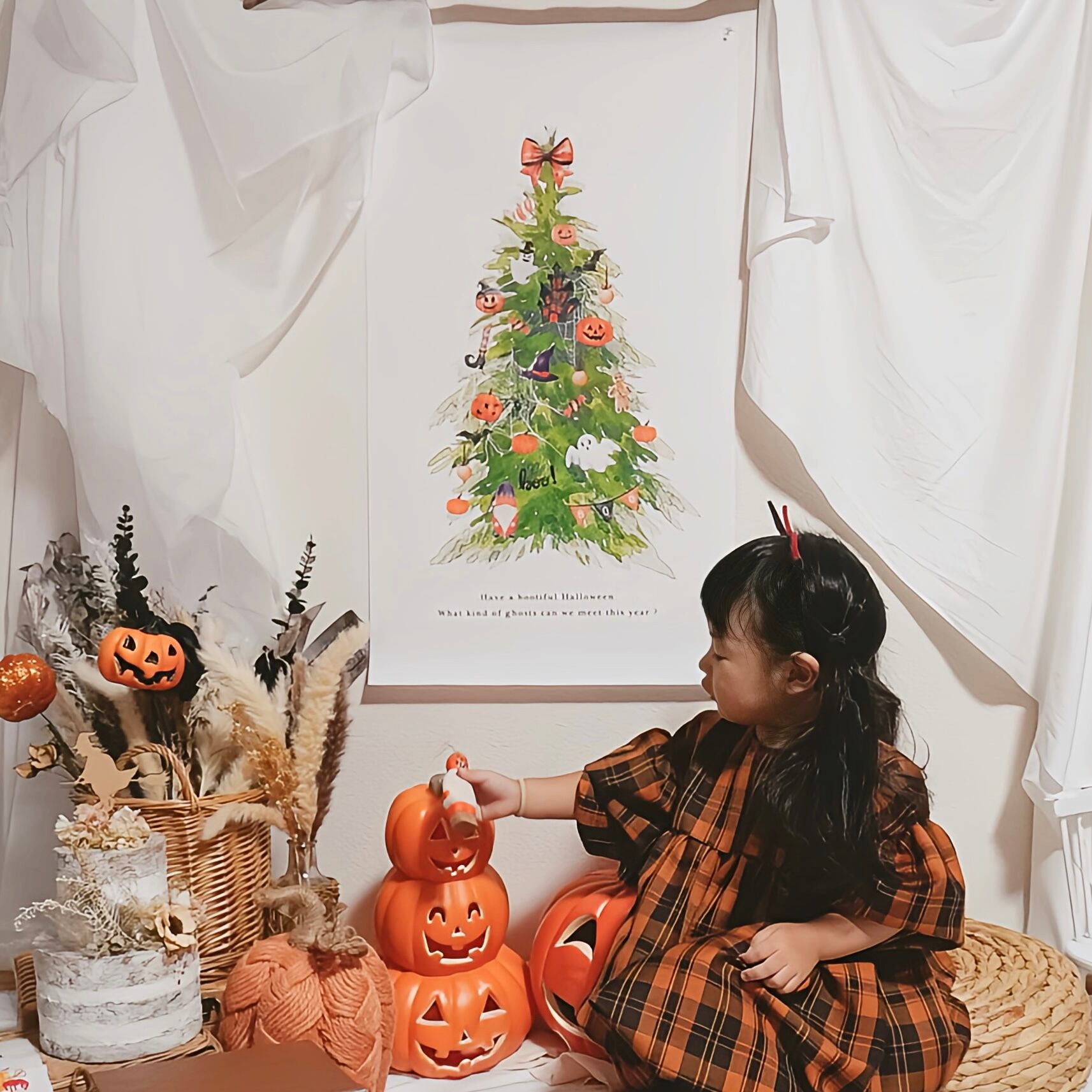 ついに完成♪ハロウィン×ツリーのタペストリー