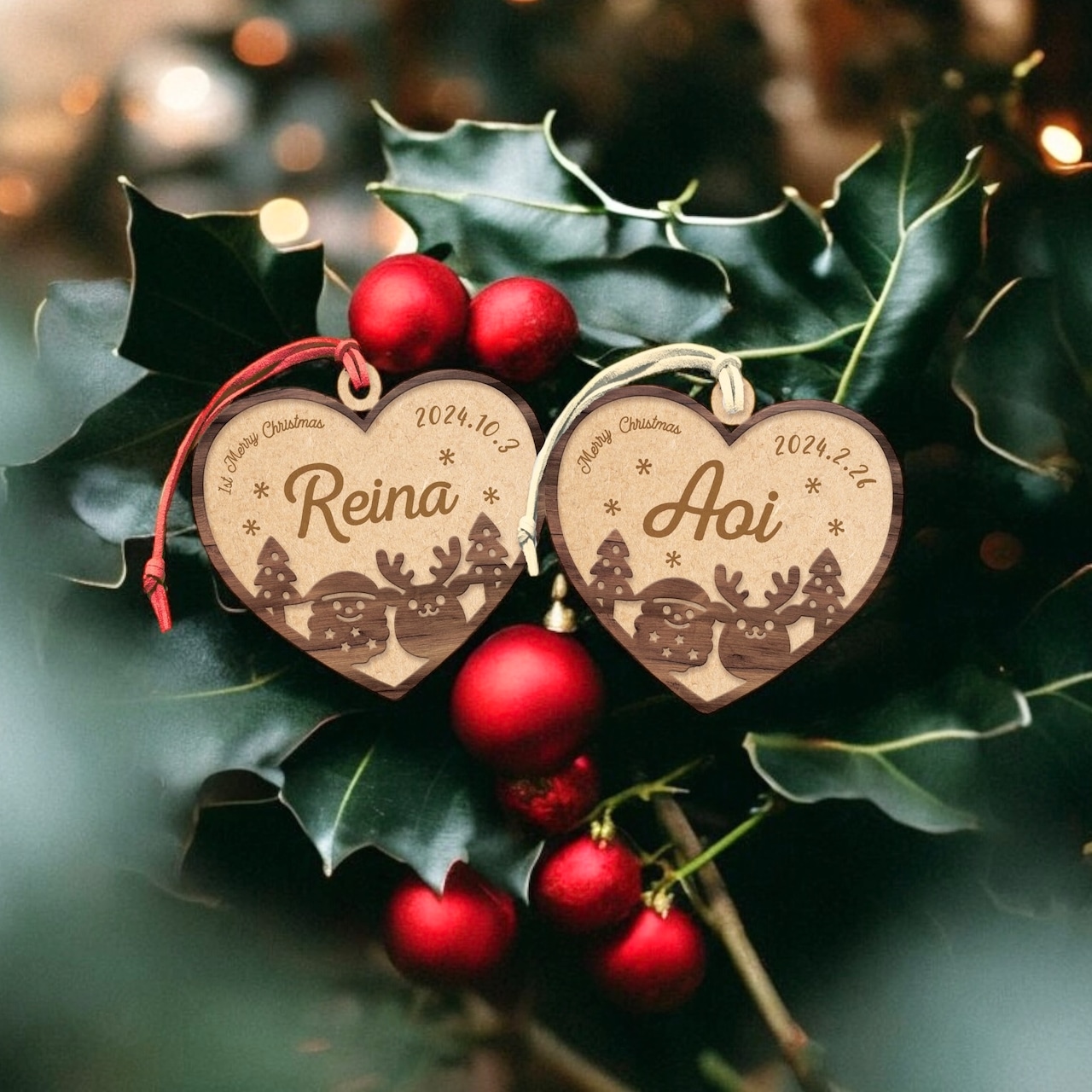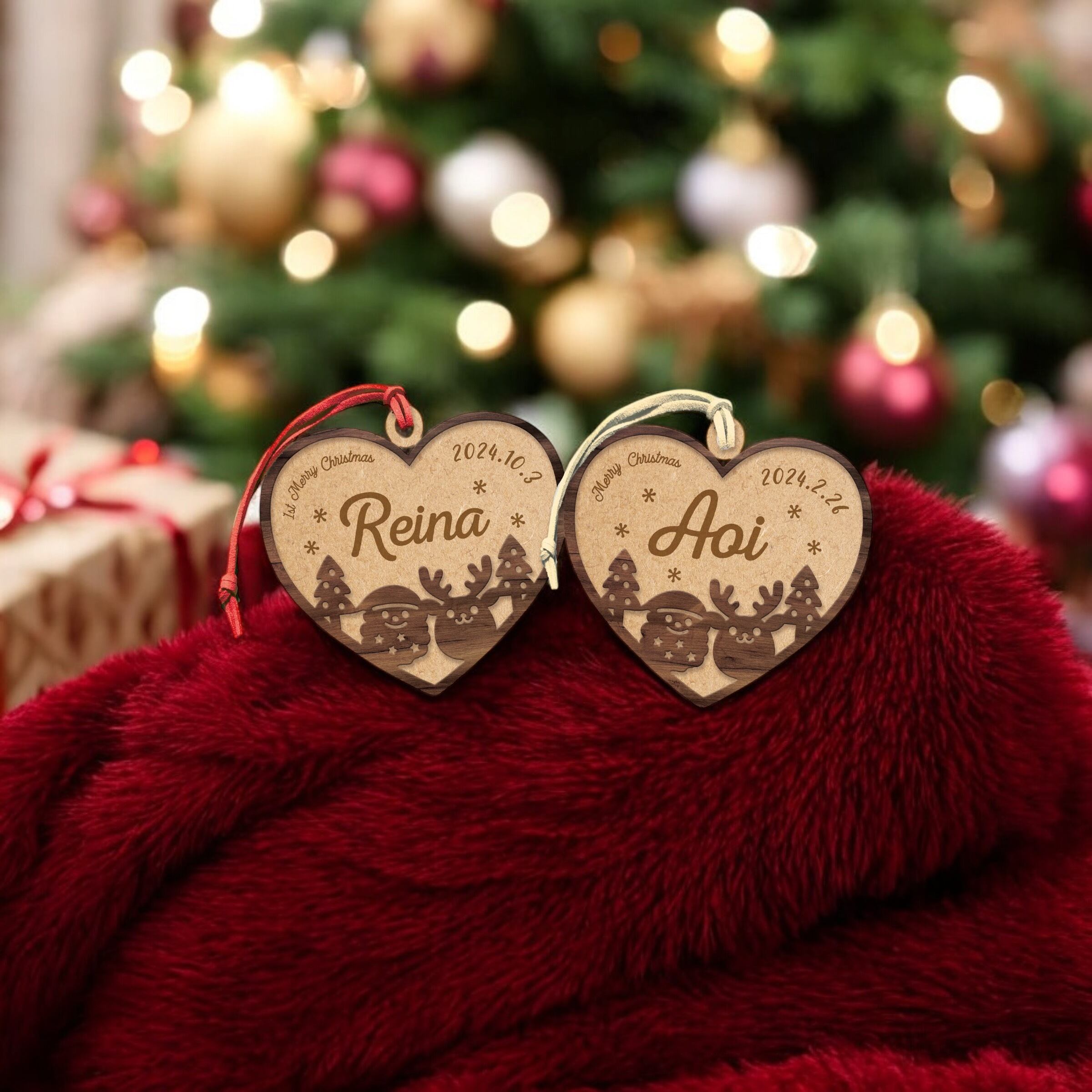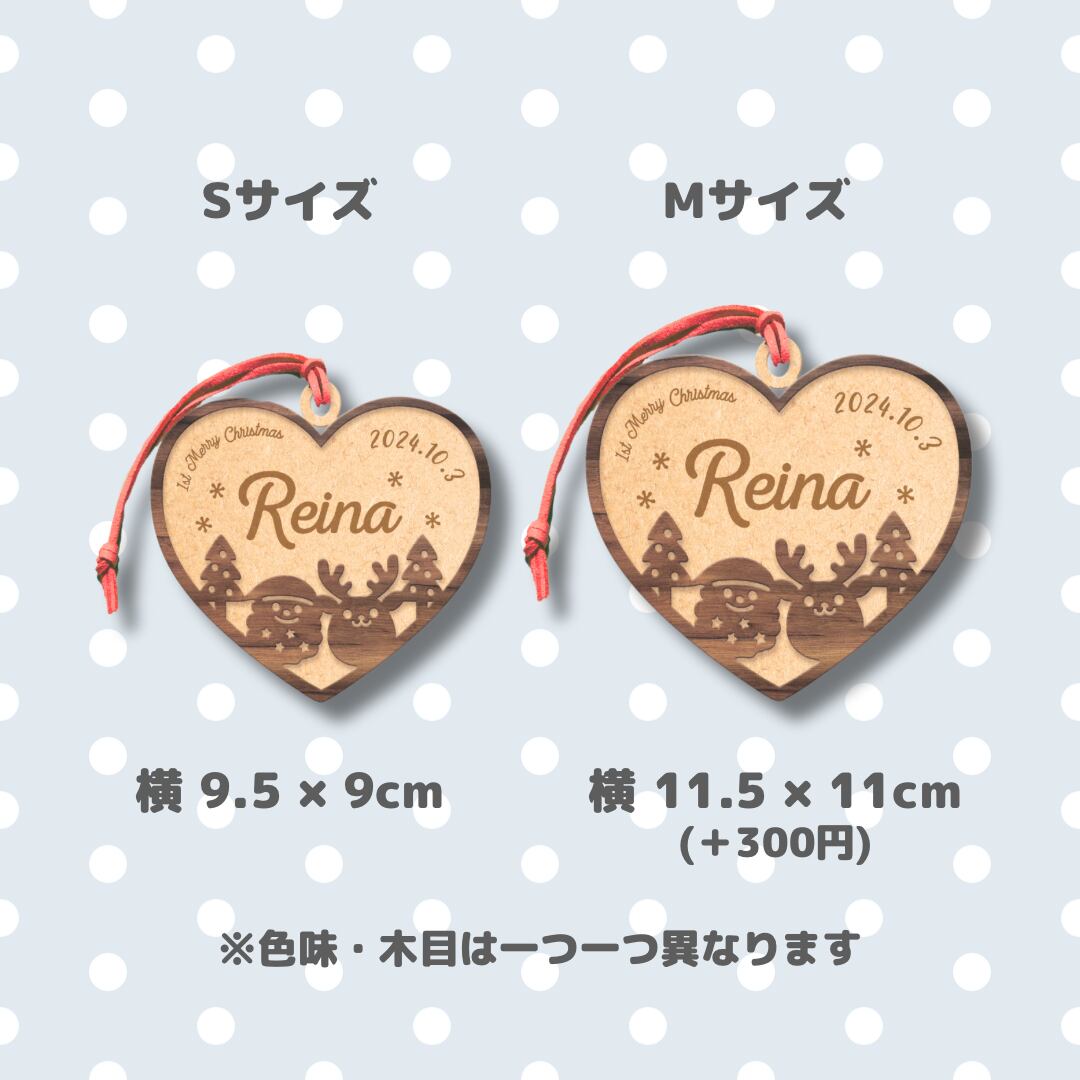 ハートの形をした 名入り 木製 クリスマスオーナメント 西暦 生年月日が入ります 出産祝い 贈り物にも♪